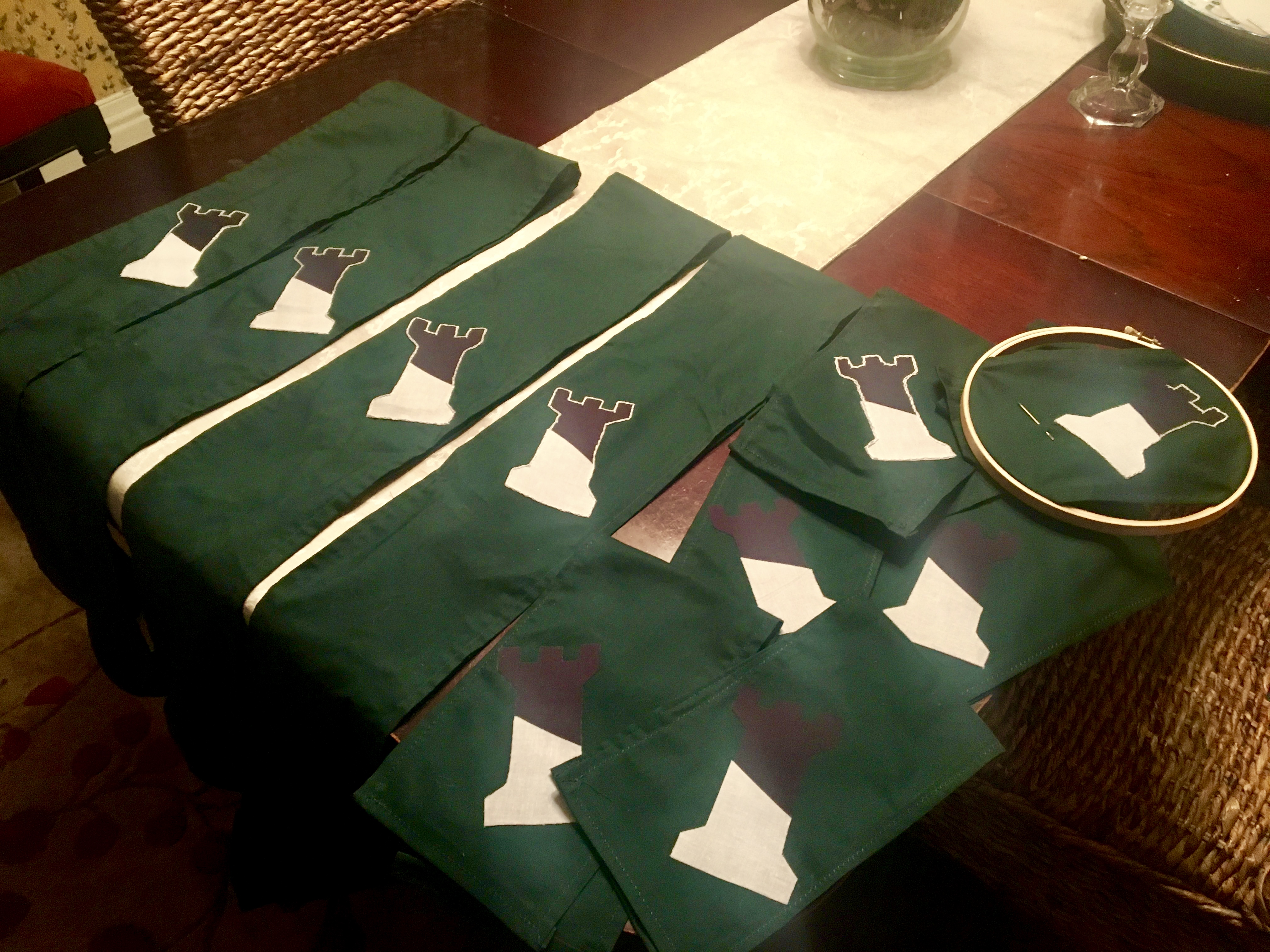 Though the months ahead can be a little daunting, they are also tremendously exciting, and, in preparation for these events, I have been working on several projects for the Barony that I’d love to share. Many of them relate to my position as Chatelaine in the Barony, but some were a little bit extra (see the new banner poles built for Mudthaw). I’ll give you the highlights…