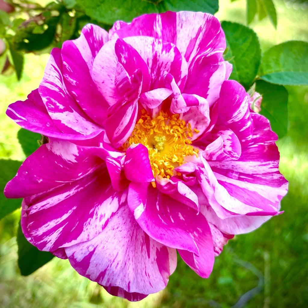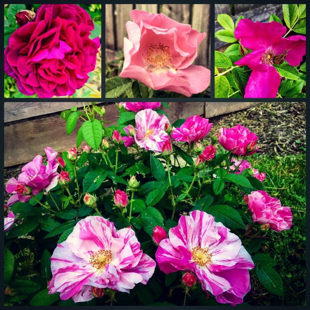 Additionally, I’ve been helping to create some online challenges and conversation starters on the baronial Facebook page, and Phelippe is elbow deep in knitting and weaving projects. He is also about to begin collaborating on a musical production project with Drake Oranwood and Laila al-Sanna’ al-Andalusiyya (no spoilers). Meanwhile, I’m playing in the dirt… I am an avid gardener and have been working to greatly expand the number of medieval plants I’m growing. Some of my favorites are our old world roses…